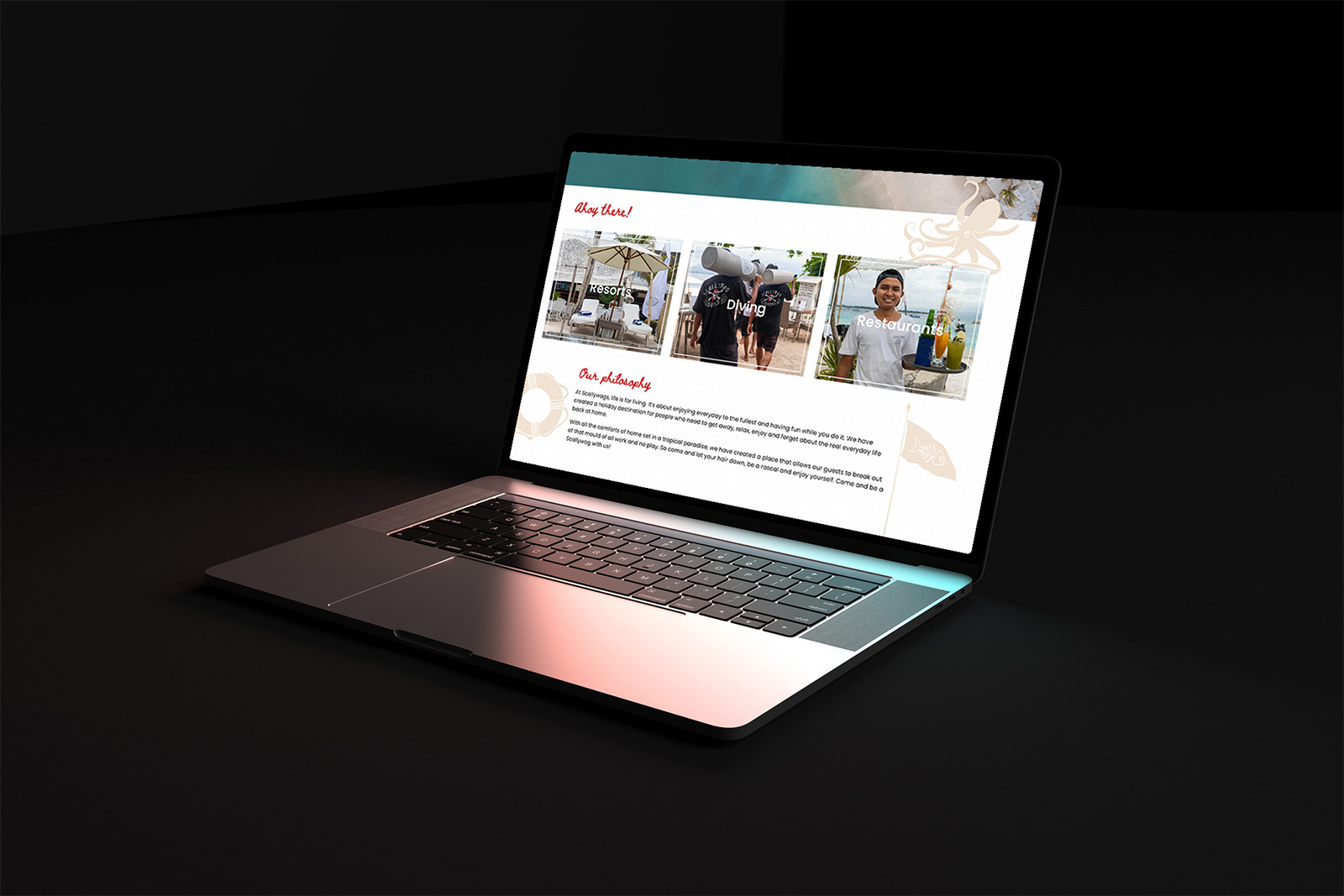 I was provided with a comprehensive and visually appealing design for the Scallywags website. The design featured two separate themes: one for the hotel and another for the dive center. This approach ensured that each section of the website catered to its specific audience while maintaining a cohesive brand identity. The design elements were crafted to highlight the unique experiences offered by Scallywags, from luxurious accommodations to exciting dive adventures.
